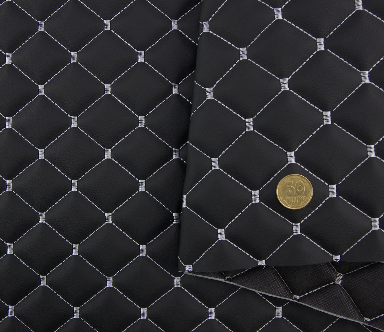 Стьобаний шкірзам Maldive "чорний Ромб" з світло-сірою ниткою, на поролоні 7мм, флізелін, шир.1,35 м Туреччина